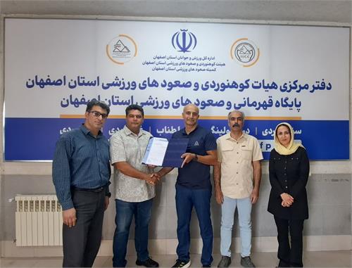 در این مراسم که با حضور کیوان زمانی ریاست هیئت استان، الهه ادیب نائب رئیس ،مهدی باقرزاده دبیر استان و غلامحسین ریحانیان از بازرسان آموزش استان برگزار گردید مرتضی اشرفی حکم ریاست این بخش را از دستان کیوان زمانی ریاست هئیت کوهنوردی و صعودهای ورزشی استان اصفهان دریافت نمودند.