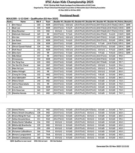 نتایج دختران U13 لید مسابقات آسیایی در کشور هند به شرح زیر می باشد :
